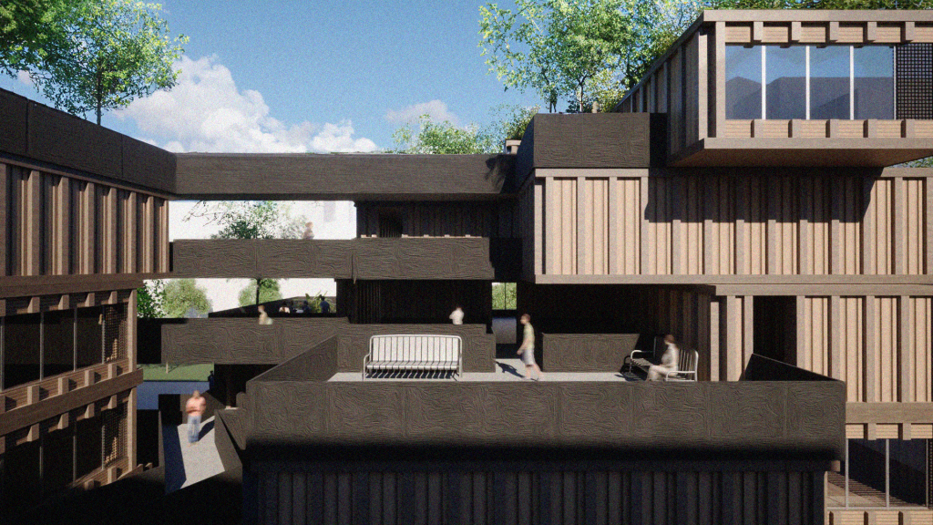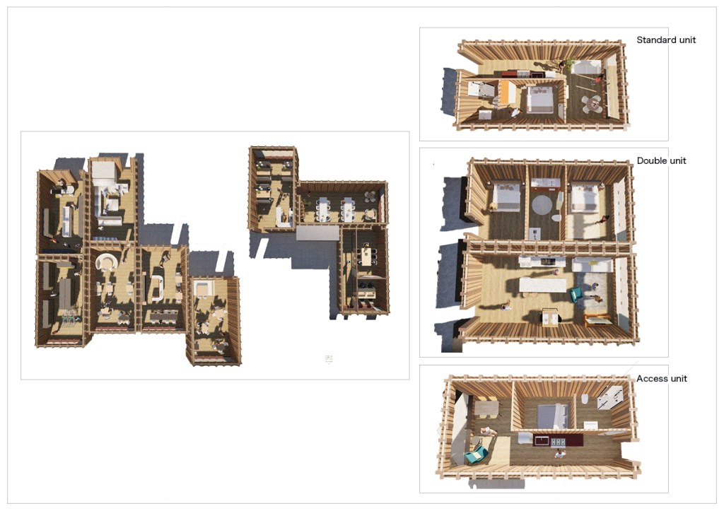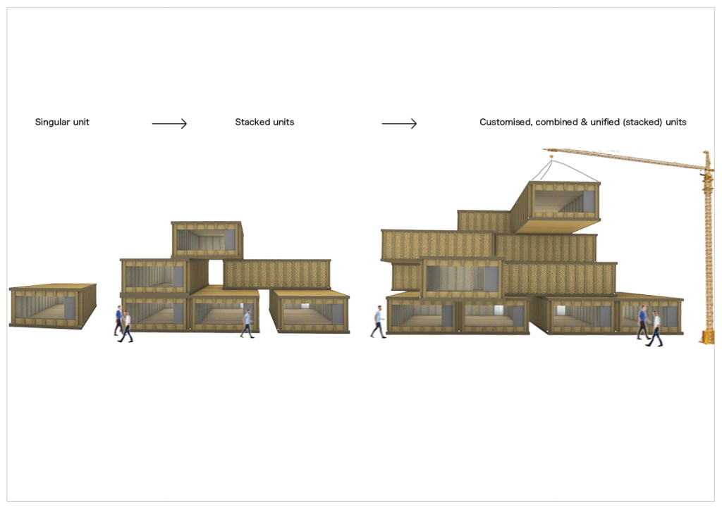 My design is a modular (natural) timber unit building, which embodies the concept of Double Design proposed by Michael Cassidy, one of my lecturers during this semester.